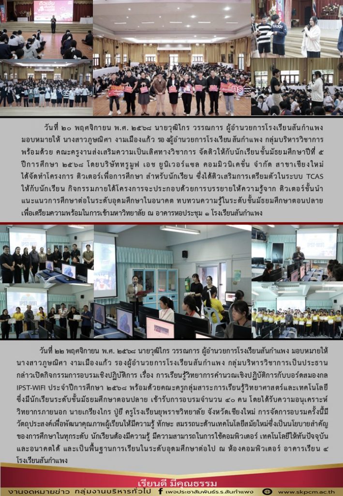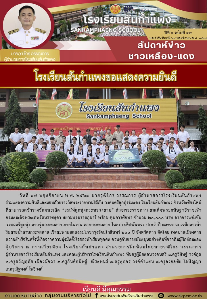 วารสารโรงเรียน สัปดาห์ข่าวชาวเหลืองแดง ปีที่ 6 ฉบับที่ 47 ประจำวันจันทร์ ที่ 24 พฤศจิกายน พ.ศ. 2568 24 พฤศจิกายน 2025 งานพัฒนาเว็บไซต์ โรงเรียนสันกำแพง 1 Views Post Views: 2