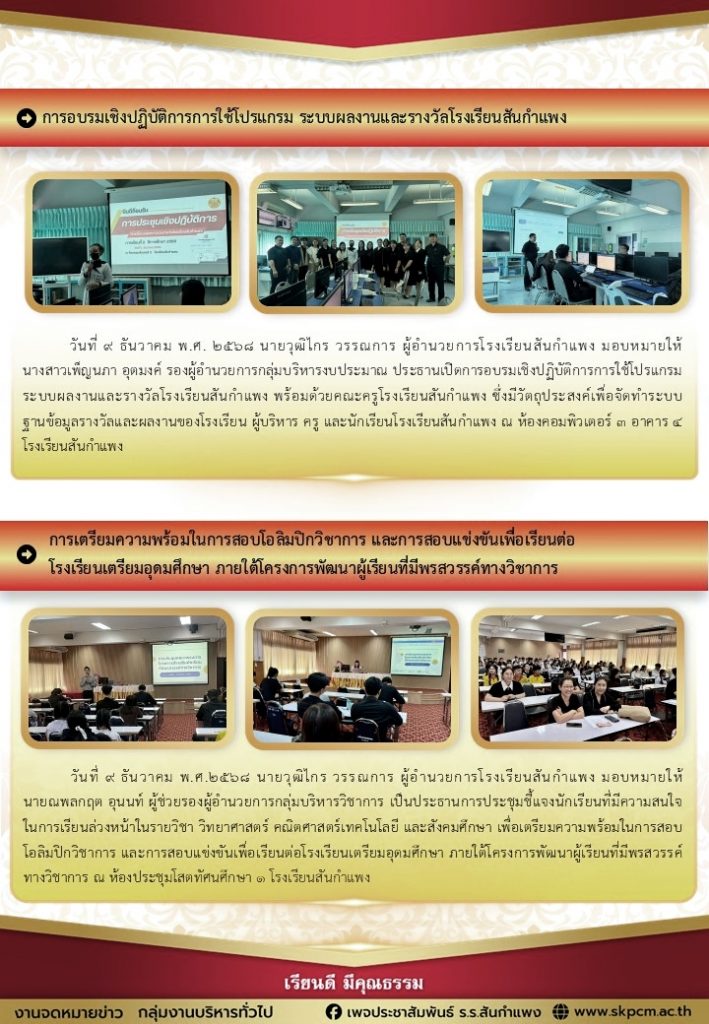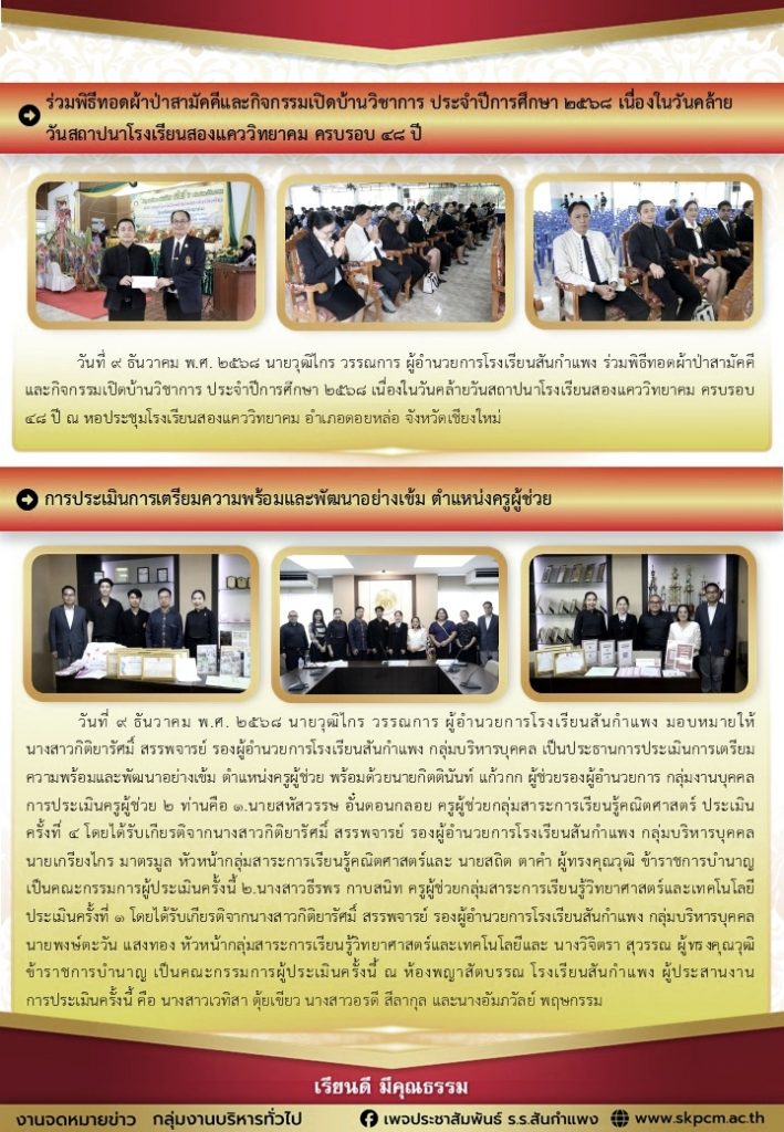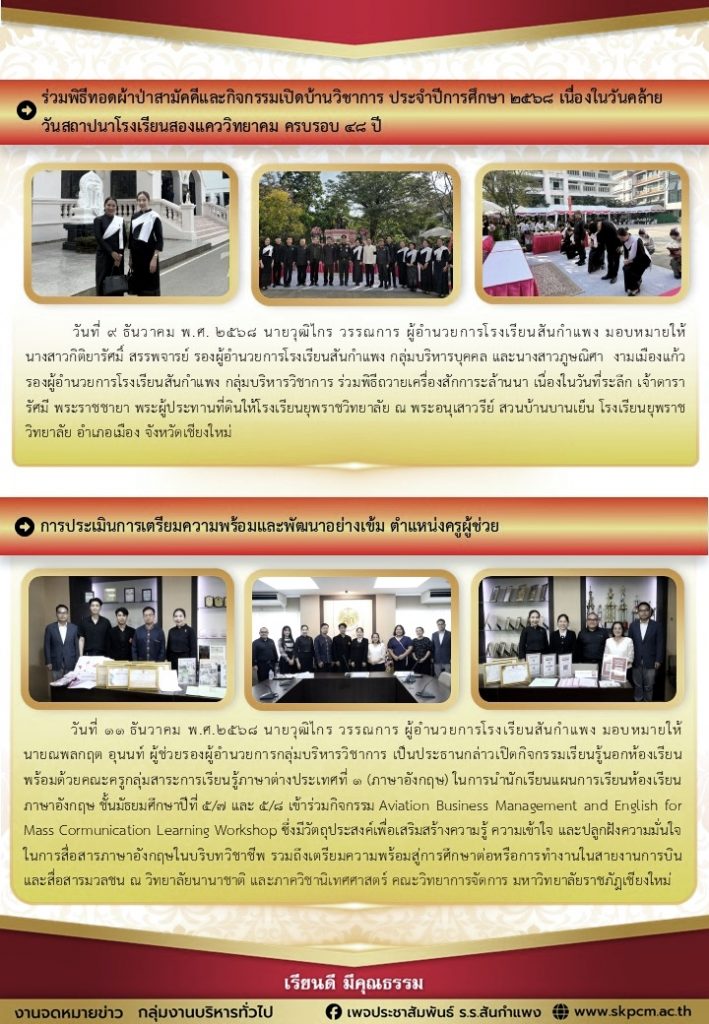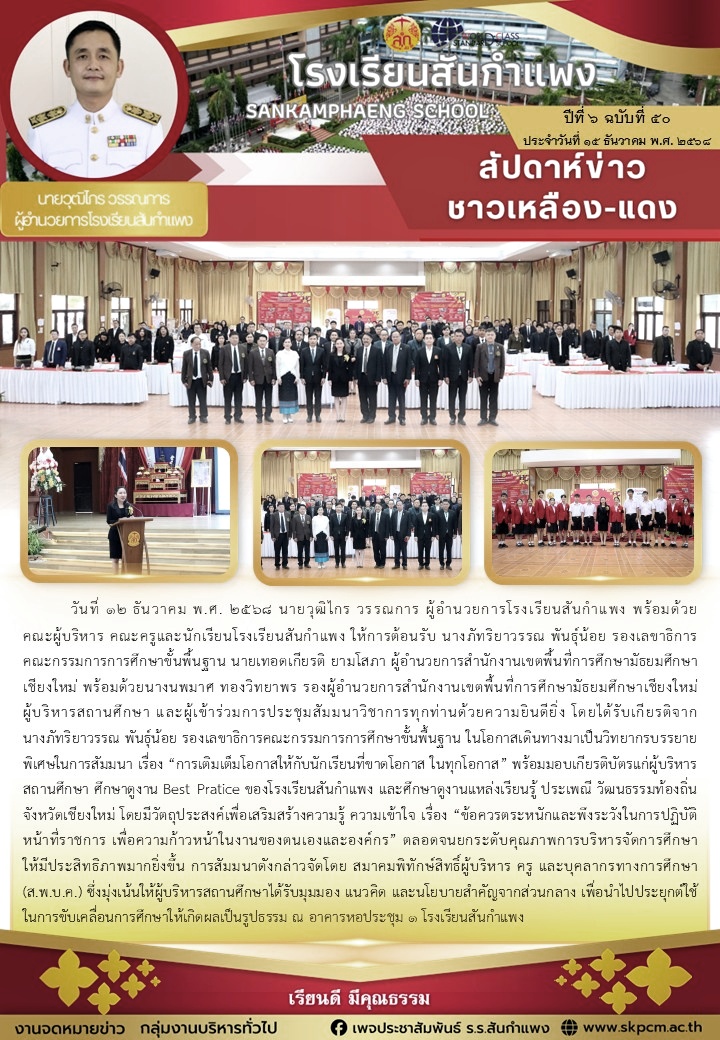 วารสารโรงเรียน สัปดาห์ข่าวชาวเหลืองแดง ปีที่ 6 ฉบับที่ 50 ประจำวันจันทร์ ที่ 15 ธันวาคม พ.ศ. 2568 15 ธันวาคม 2025 งานพัฒนาเว็บไซต์ โรงเรียนสันกำแพง 1 Views Post Views: 2