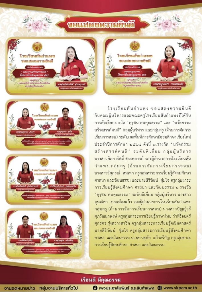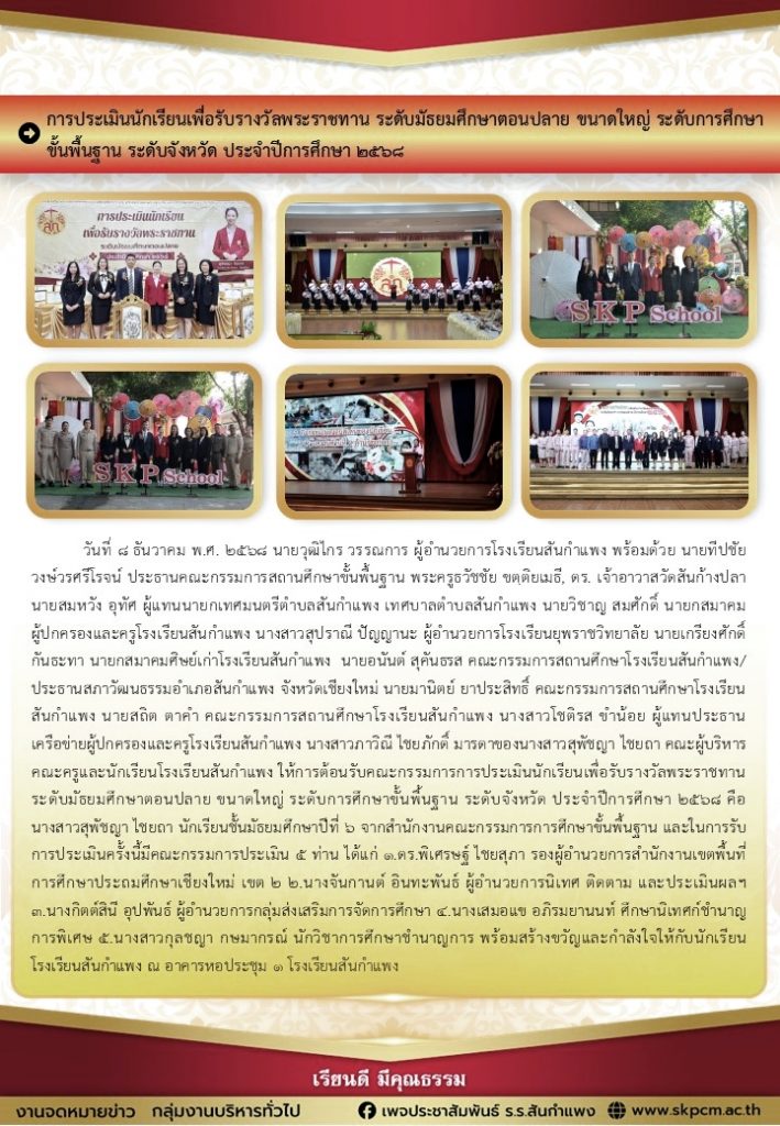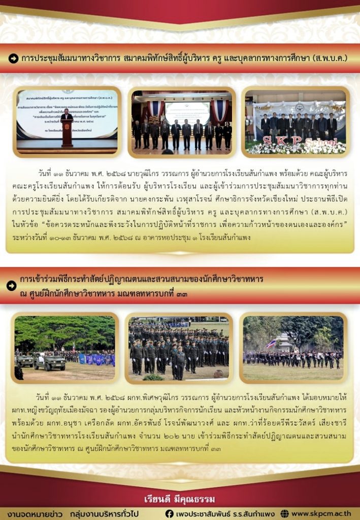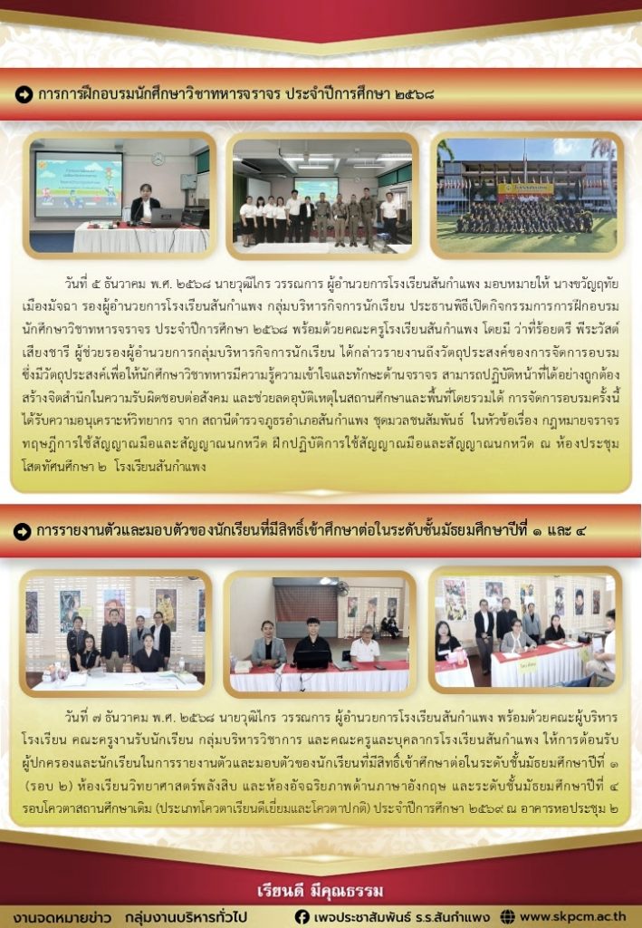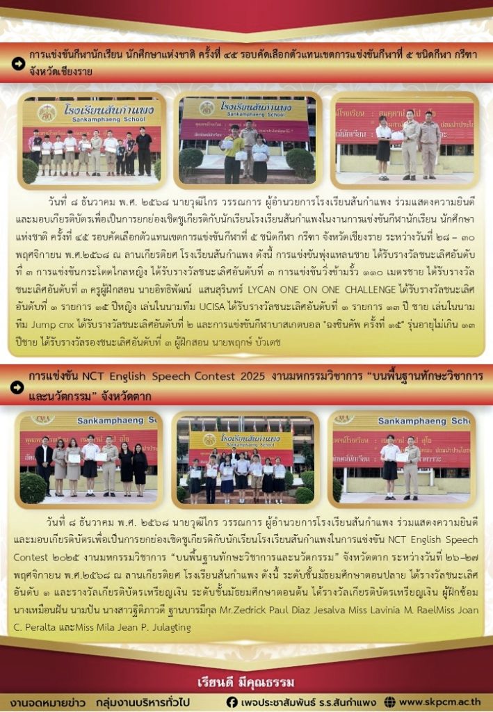 วารสารโรงเรียน สัปดาห์ข่าวชาวเหลืองแดง ปีที่ 6 ฉบับที่ 50 ประจำวันจันทร์ ที่ 15 ธันวาคม พ.ศ. 2568 15 ธันวาคม 2025 งานพัฒนาเว็บไซต์ โรงเรียนสันกำแพง 1 Views Post Views: 2