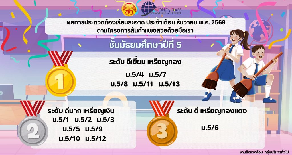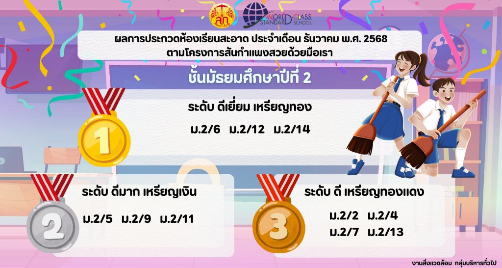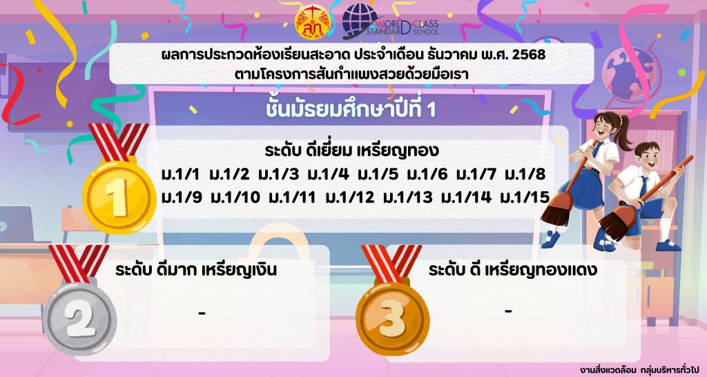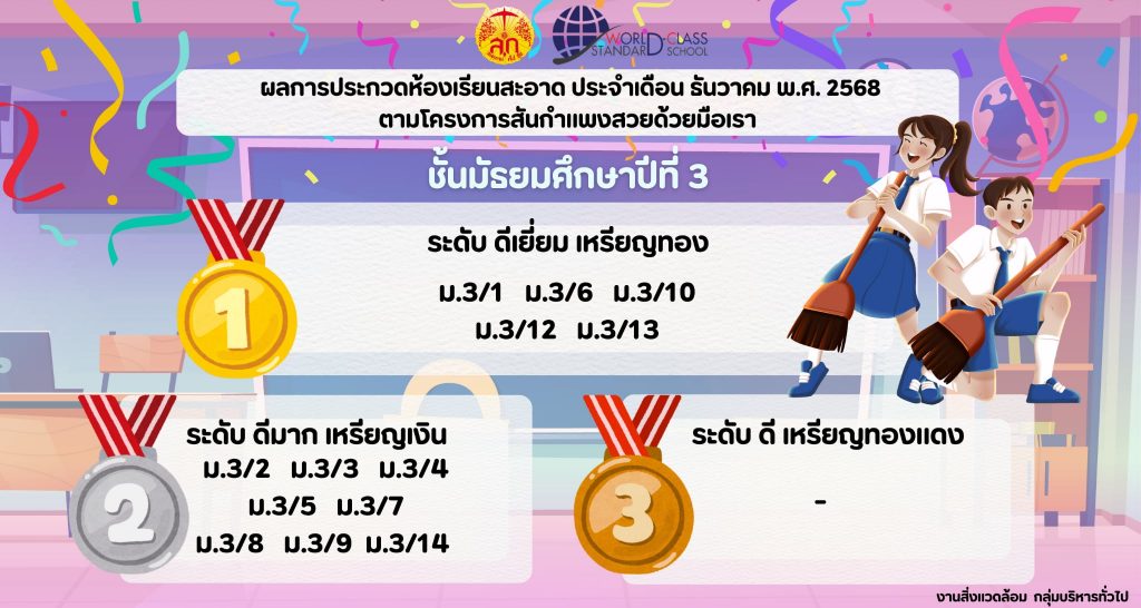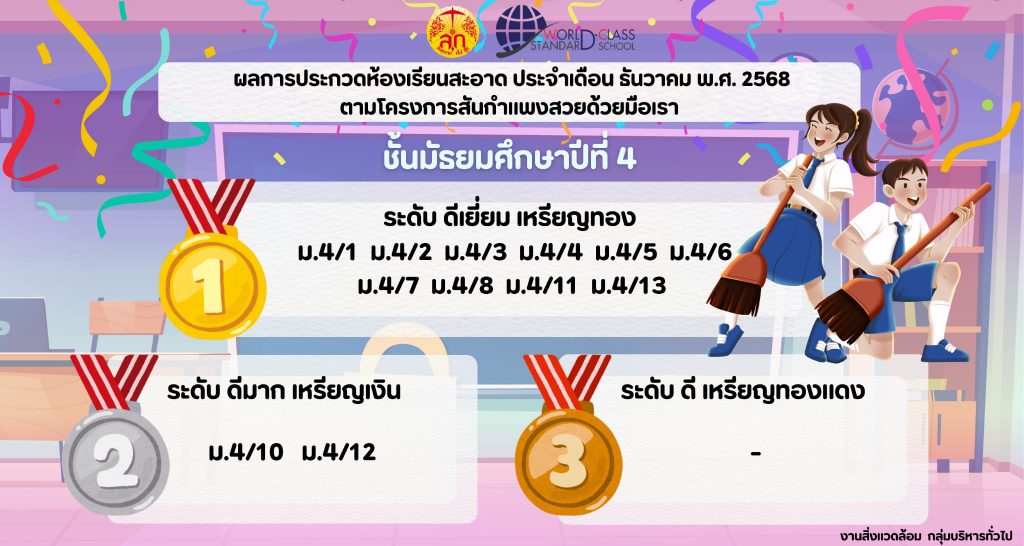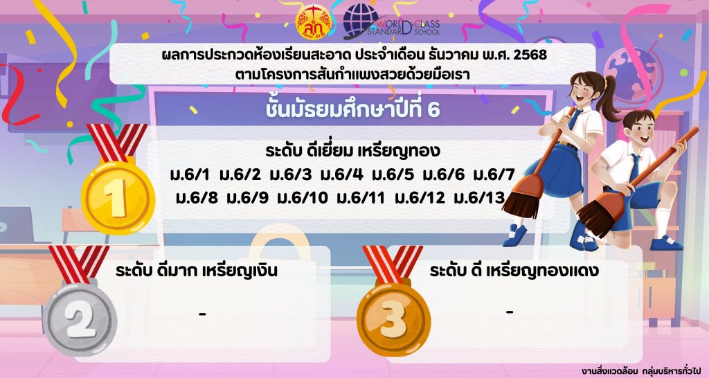 ประชาสัมพันธ์บริหารทั่วไป ผลการประกวดห้องเรียนสะอาด ประจำเดือน ธันวาคม 2568 6 มกราคม 2026 งานพัฒนาเว็บไซต์ โรงเรียนสันกำแพง 3 Views Post Views: 4