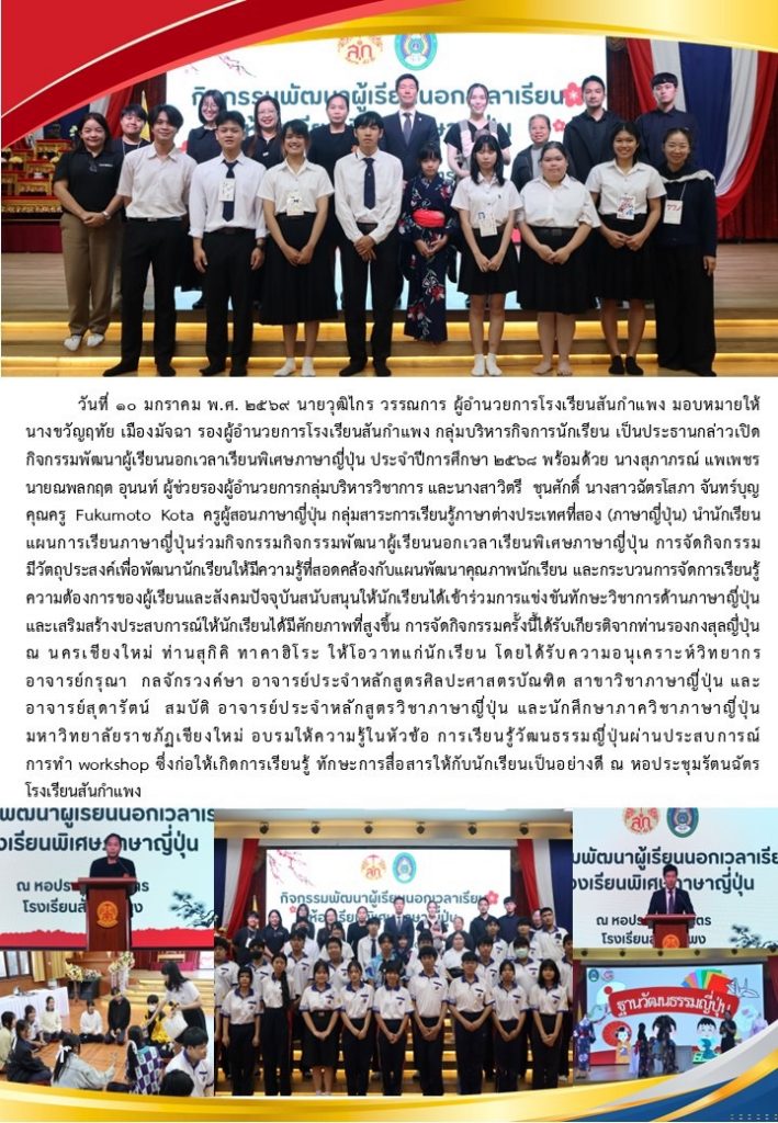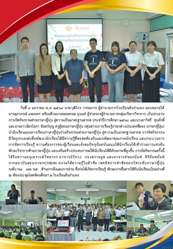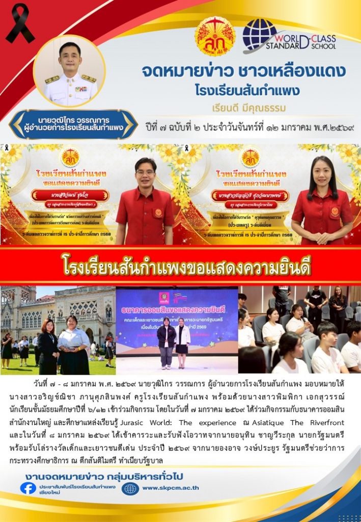 วารสารโรงเรียน สัปดาห์ข่าวชาวเหลืองแดง ปีที่ 7 ฉบับที่ 2 ประจำวันจันทร์ ที่ 12 มกราคม พ.ศ. 2569 12 มกราคม 2026 งานพัฒนาเว็บไซต์ โรงเรียนสันกำแพง 4 Views Post Views: 5
