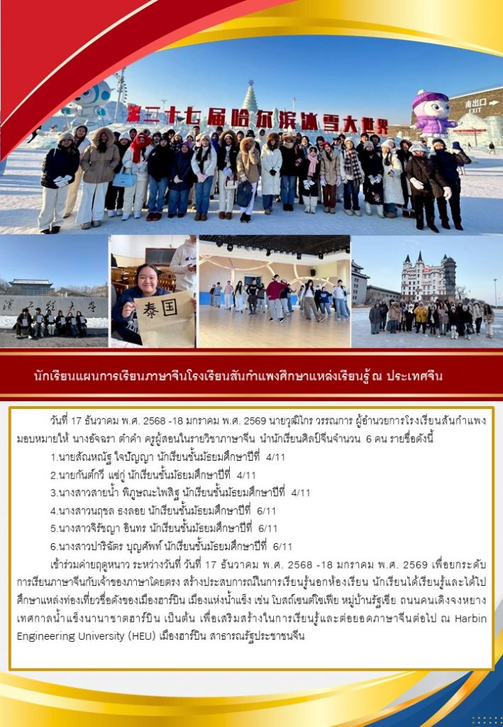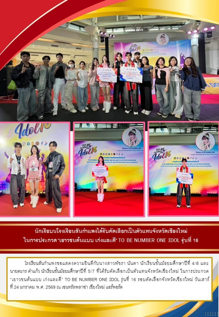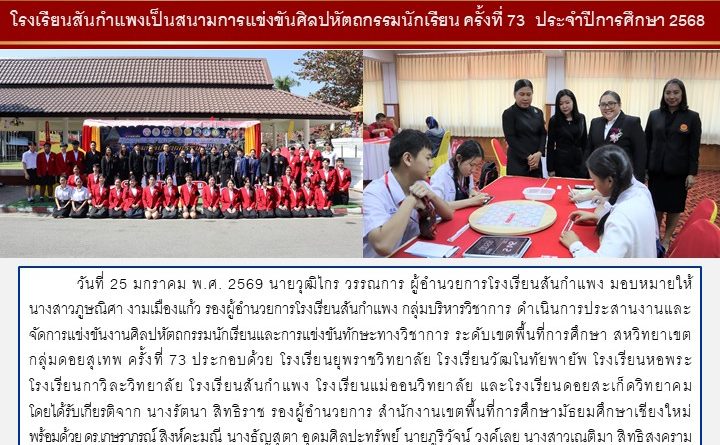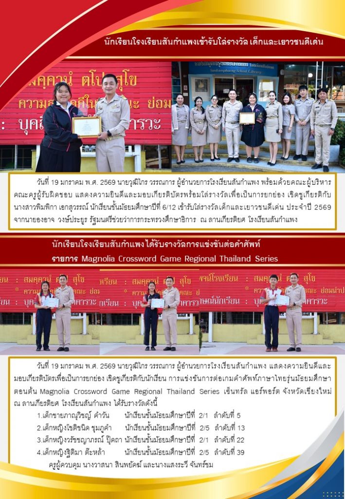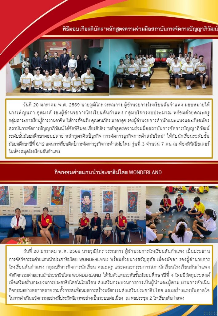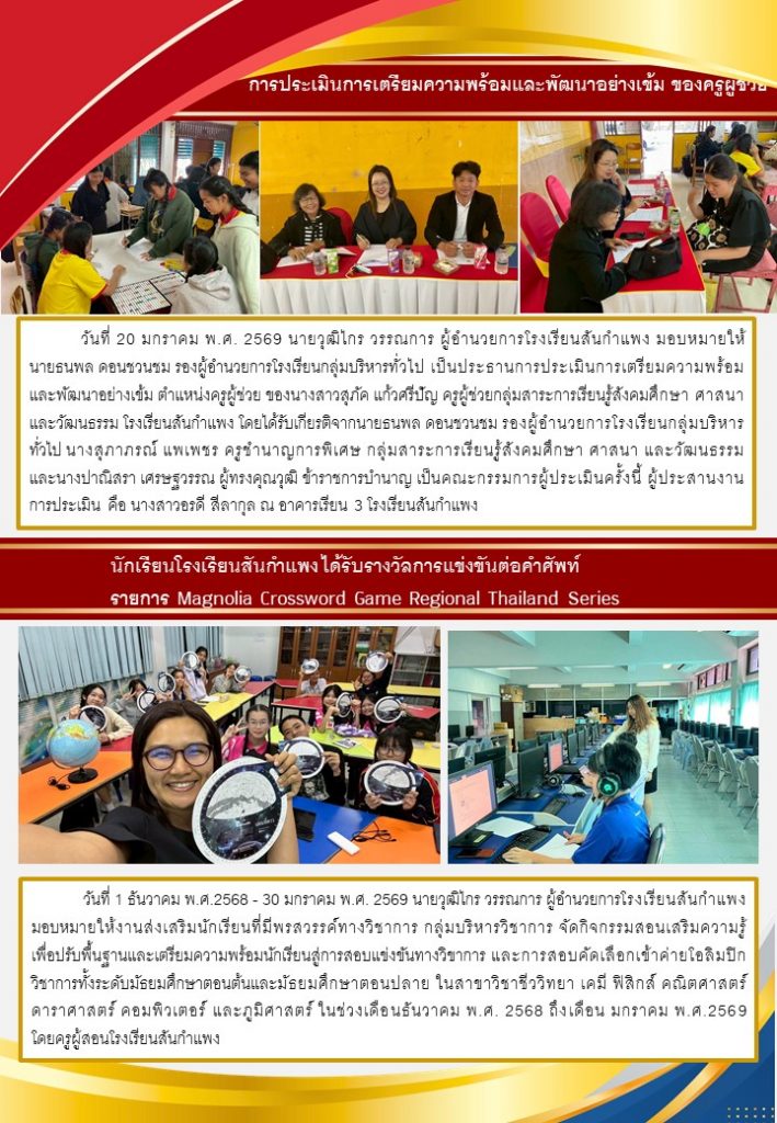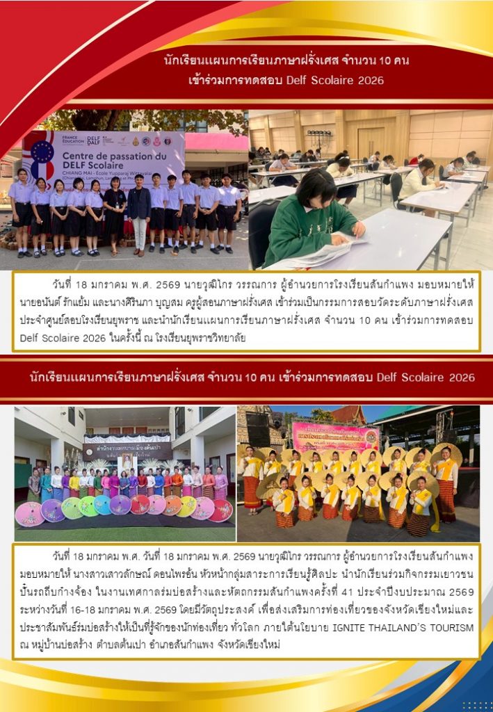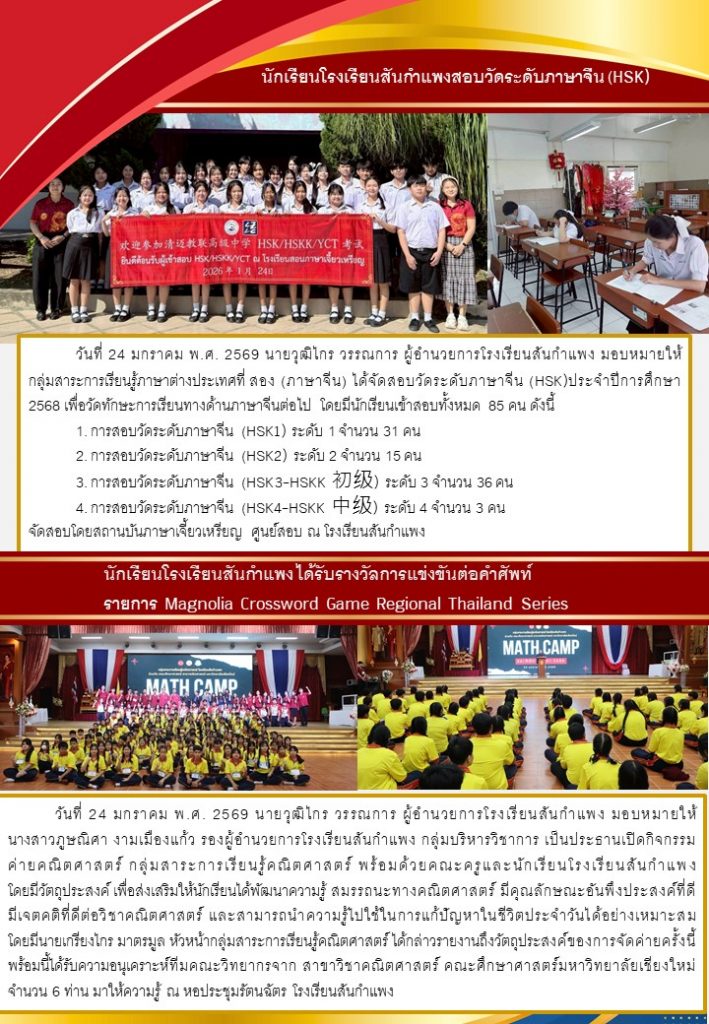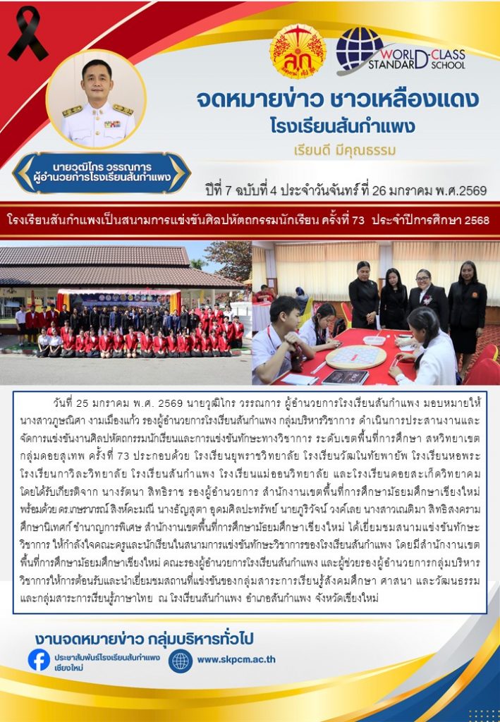 วารสารโรงเรียน สัปดาห์ข่าวชาวเหลืองแดง ปีที่ 7 ฉบับที่ 4 ประจำวันจันทร์ ที่ 26 มกราคม พ.ศ. 2569 26 มกราคม 2026 งานพัฒนาเว็บไซต์ โรงเรียนสันกำแพง 1 Views Post Views: 2