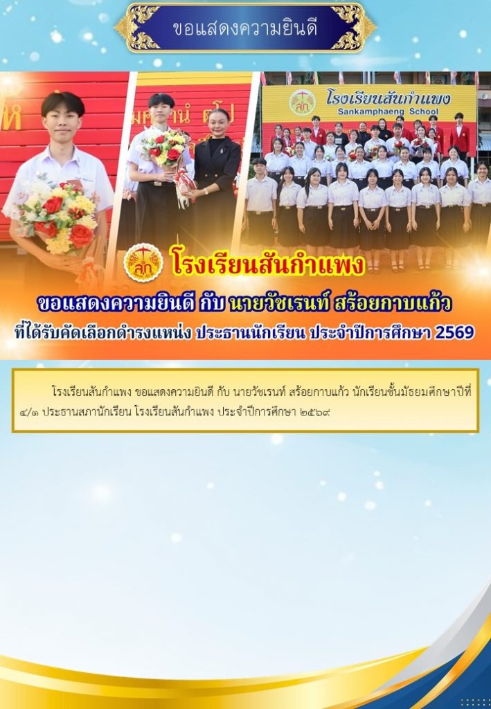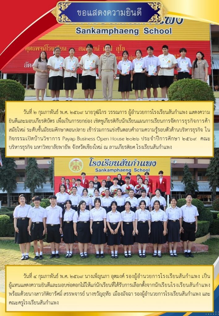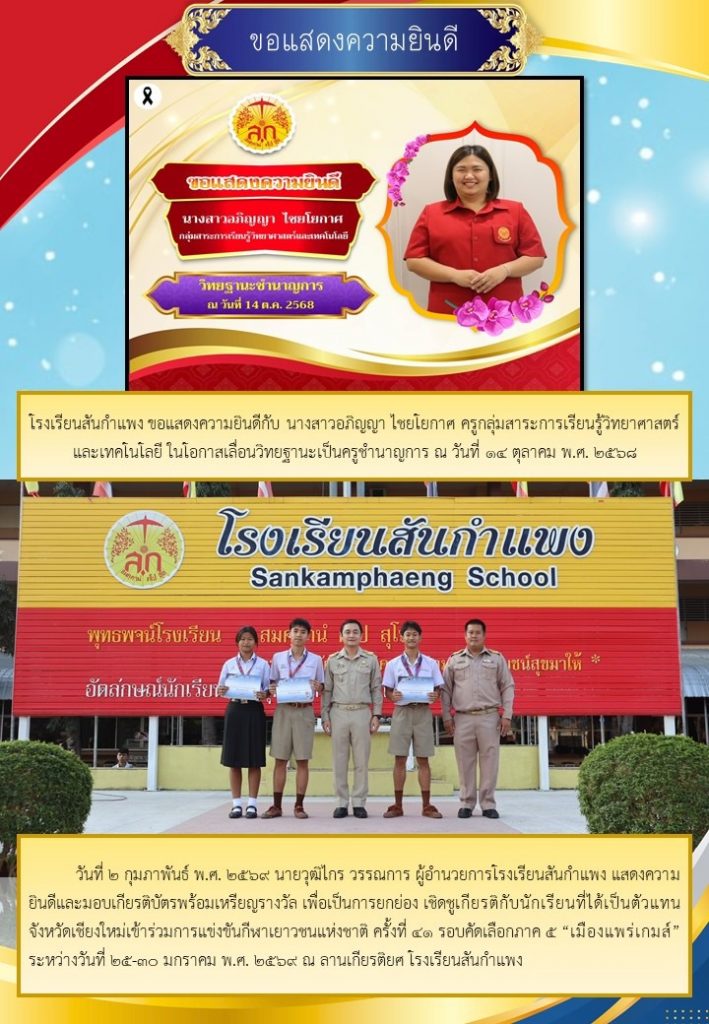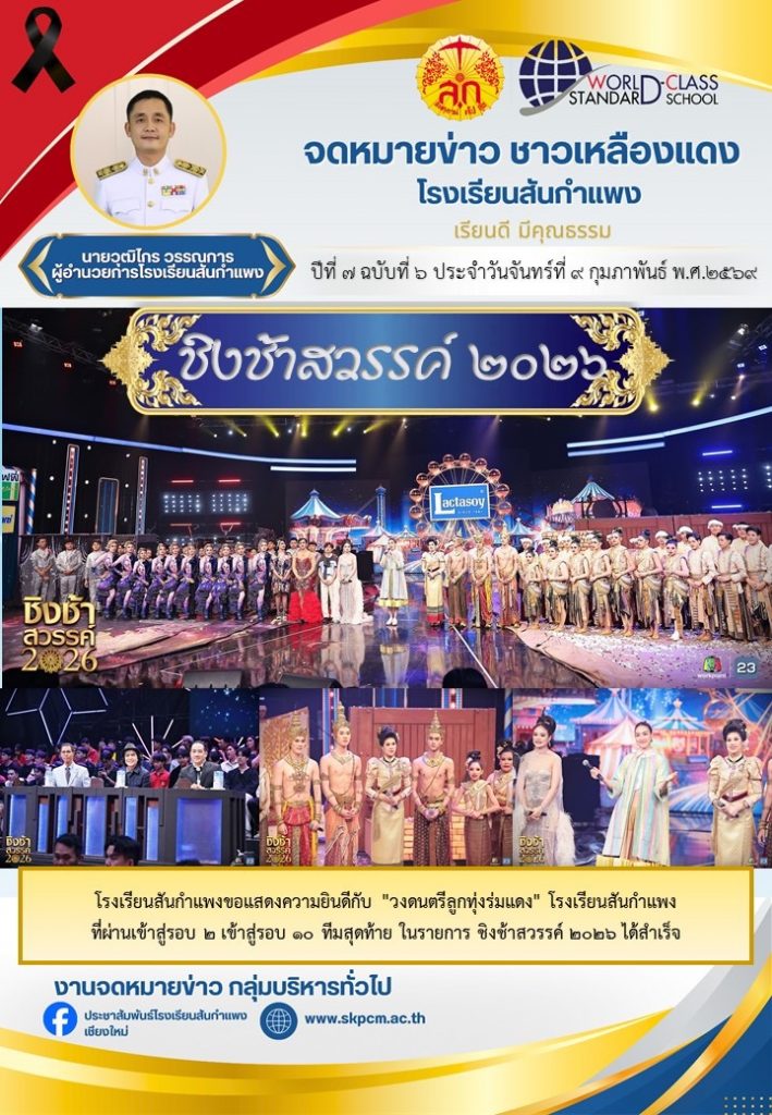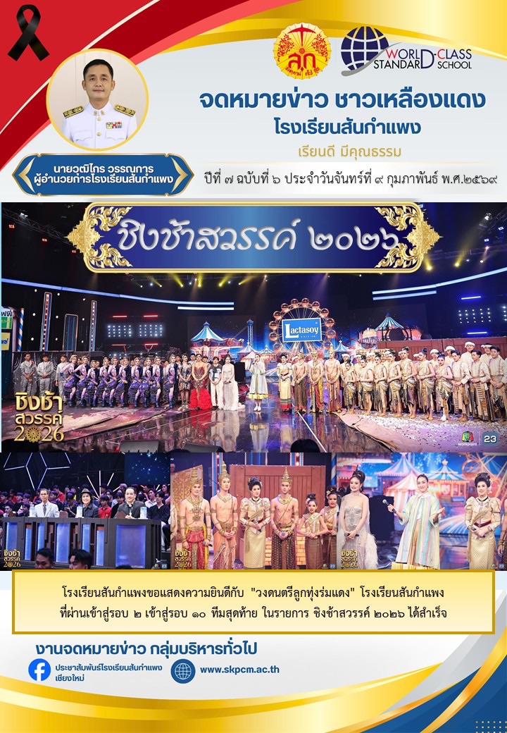 ประชาสัมพันธ์ สัปดาห์ข่าวชาวเหลืองแดง ปีที่ 7 ฉบับที่ 6 ประจำวันจันทร์ ที่ 10 กุมภาพันธ์ พ.ศ. 2569 9 กุมภาพันธ์ 2026 งานพัฒนาเว็บไซต์ โรงเรียนสันกำแพง 12 Views Post Views: 12