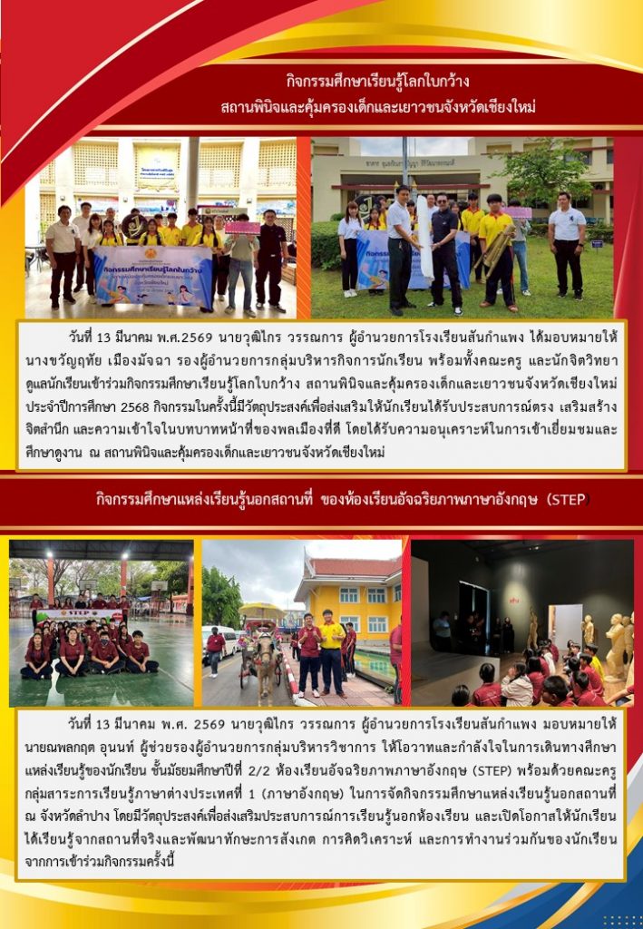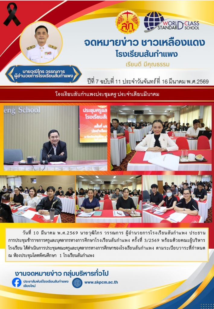 ประชาสัมพันธ์ สัปดาห์ข่าวชาวเหลืองแดง ปีที่ 7 ฉบับที่ 11 ประจำวันจันทร์ ที่ 16 มีนาคม พ.ศ. 2569 16 มีนาคม 2026 งานพัฒนาเว็บไซต์ โรงเรียนสันกำแพง 0 Views Post Views: 1