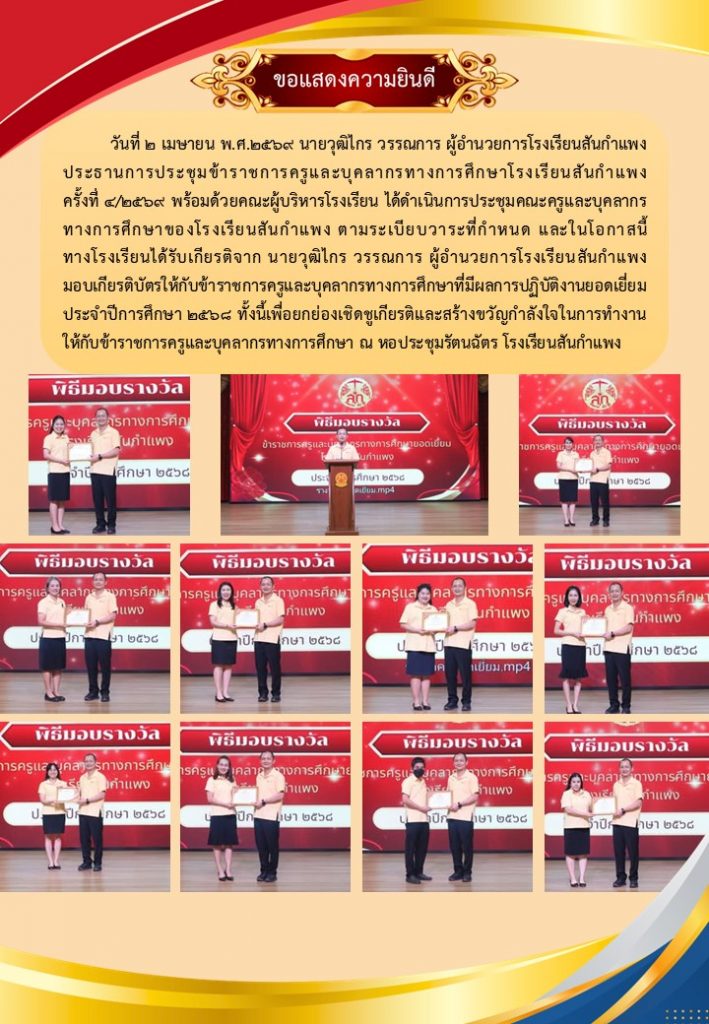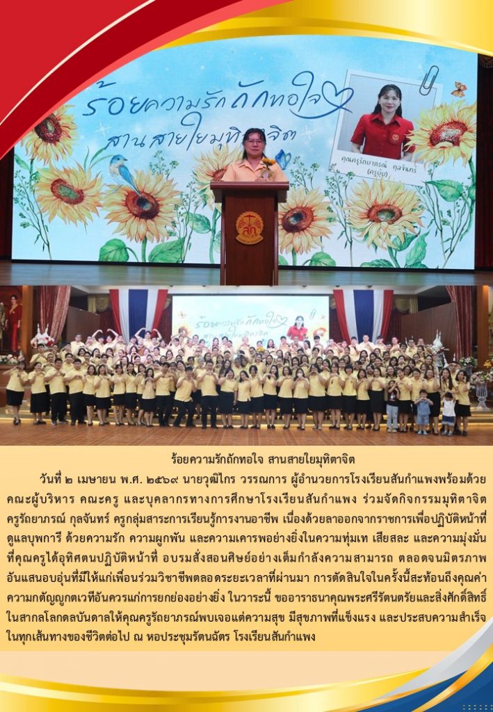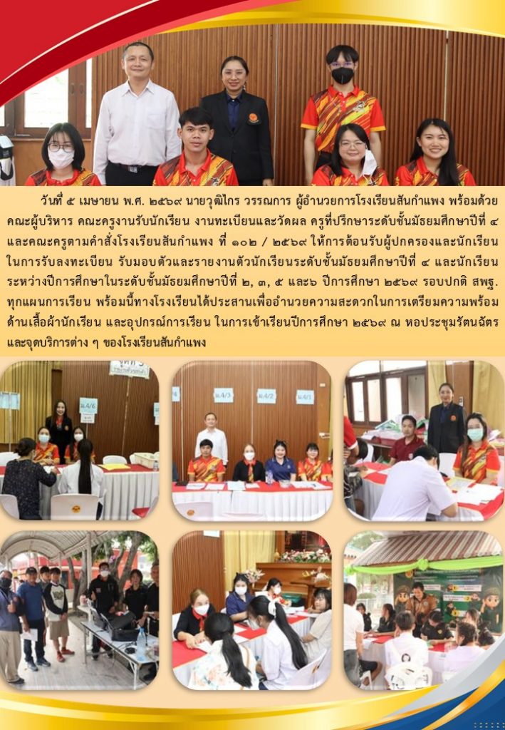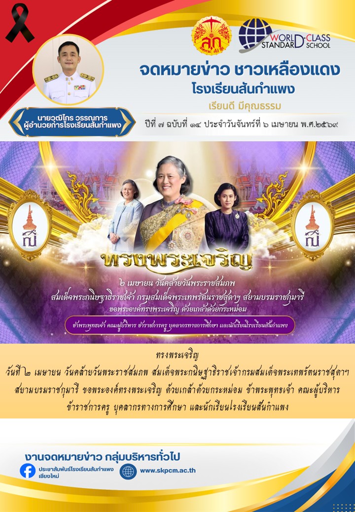 วารสารโรงเรียน สัปดาห์ข่าวชาวเหลืองแดง ปีที่ 7 ฉบับที่ 14 ประจำวันจันทร์ ที่ 6 เมษายน พ.ศ.2569 6 เมษายน 2026 งานพัฒนาเว็บไซต์ โรงเรียนสันกำแพง 0 Views Post Views: 1