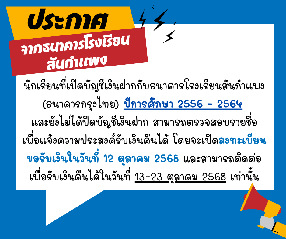 ประกาศจากธนาคารโรงเรียนสันกำแพง