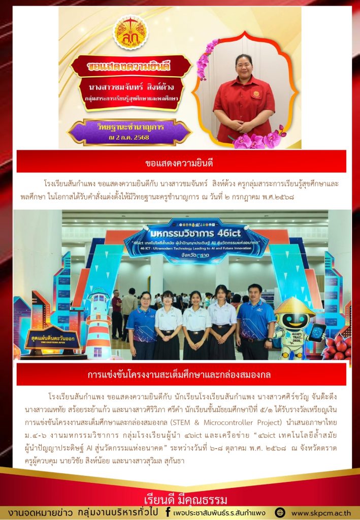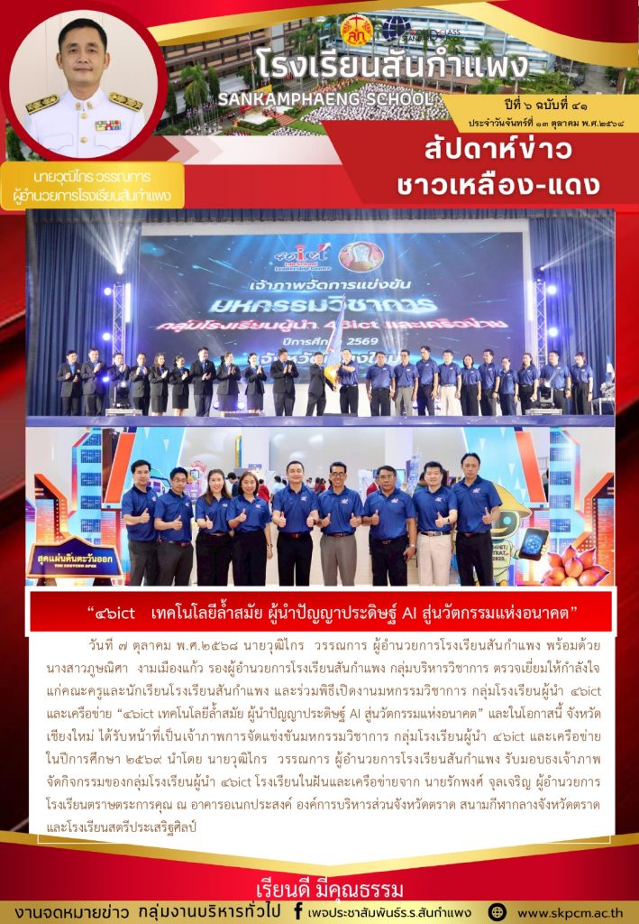 วารสารโรงเรียน สัปดาห์ข่าวชาวเหลืองแดง ปีที่ 6 ฉบับที่ 41 ประจำวันจันทร์ ที่ 13 ตุลาคม พ.ศ. 2568 15 ตุลาคม 2025 งานพัฒนาเว็บไซต์ โรงเรียนสันกำแพง 3 Views Post Views: 4