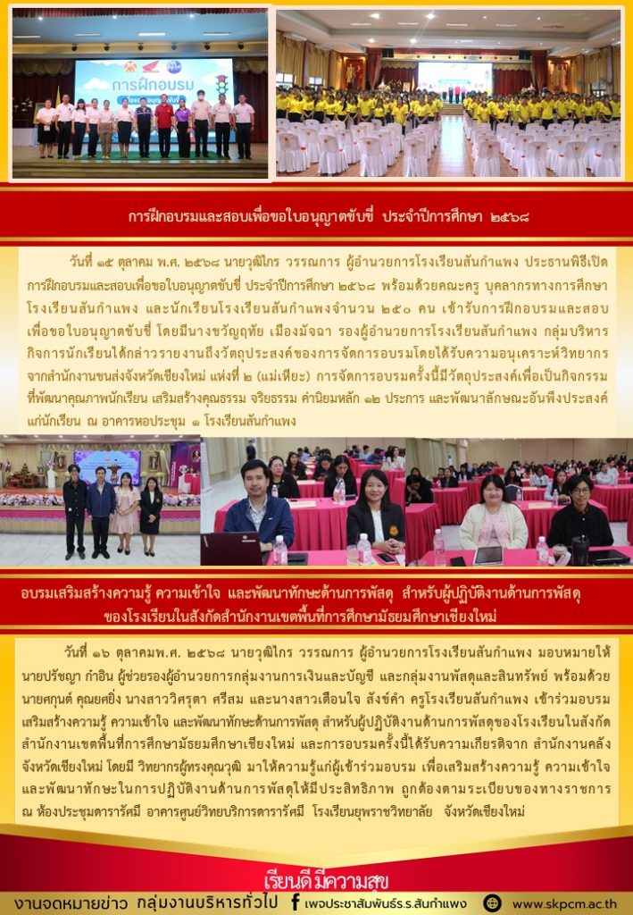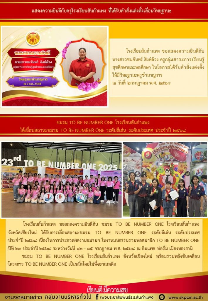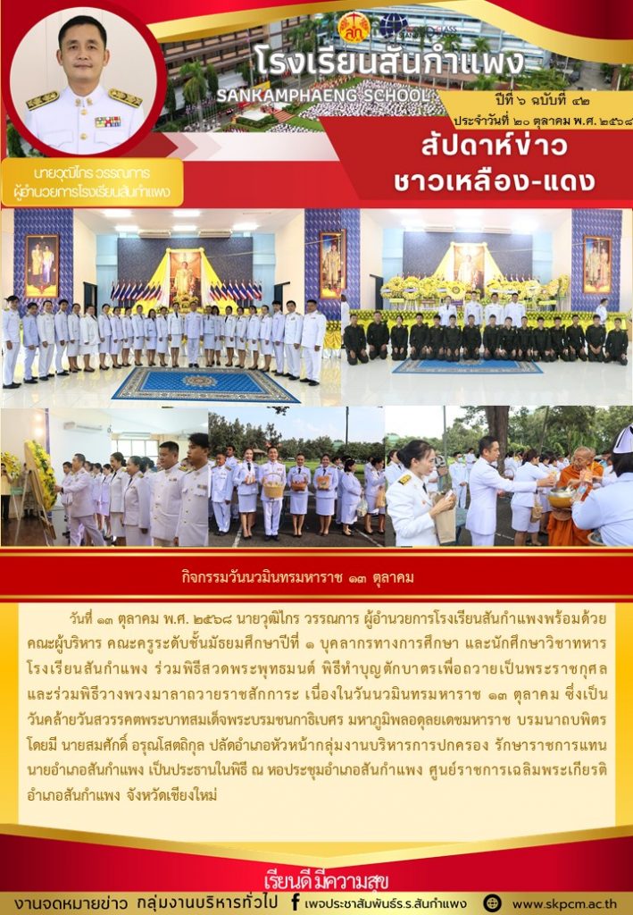 วารสารโรงเรียน สัปดาห์ข่าวชาวเหลืองแดง ปีที่ 6 ฉบับที่ 42 ประจำวันจันทร์ ที่ 20 ตุลาคม พ.ศ. 2568 20 ตุลาคม 2025 งานพัฒนาเว็บไซต์ โรงเรียนสันกำแพง 2 Views Post Views: 3